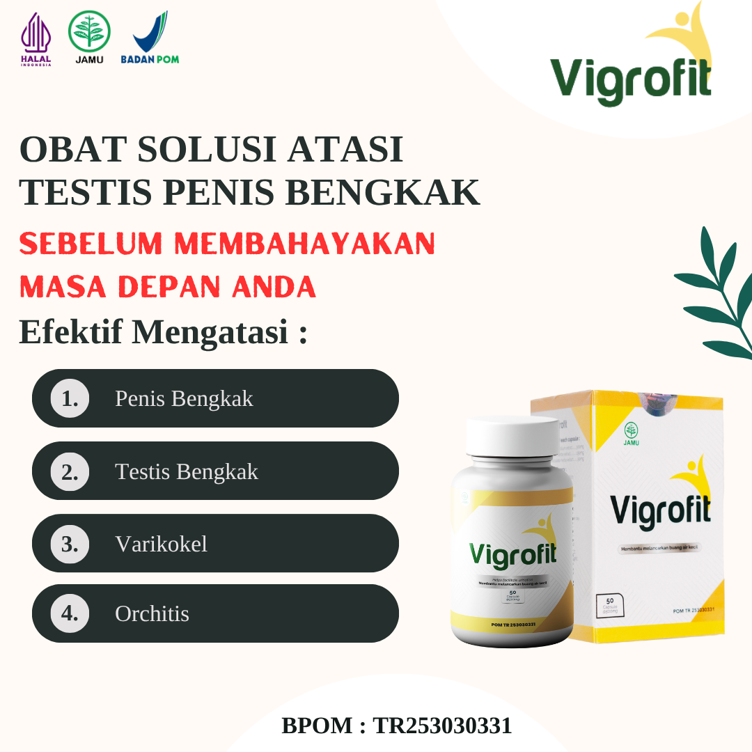 Vigrofit adalah obat testis (buah zakar) bengkak herbal terbaik untuk membantu mengatasi testis (buah zakar) bengkak akibat infeksi atau peradangan secara alami. Diracik dari bahan herbal pilihan berkualitas tinggi, Vigrofit bekerja efektif mengurangi pembengkakan, meredakan nyeri, dan melawan bakteri penyebab infeksi.Telah membantu ribuan orang sembuh dari testis bengkak, tanpa operasi dan tanpa efek samping berbahaya.